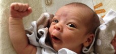- Mar 23 (9m4d) – You had your 9-month appointment with Dr. Mayo today. It was during your naptime, so you were very solemn (a/k/a exhausted). Look at your cute hands clutching Dr. Mayo’s!