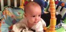 - Apr 14 (9m25d) – Exploring the other side of your toy! I’m not sure how you managed to wiggle your way behind that bar, but you did it! You love to pull that string that causes the flower to spin!