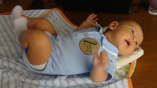 This is the only 2 month picture we have of Eli because we had our 2-month doctor visit shortly after this. There, he got his first Pentacel shot, causing a fever. He was extremely unhappy for about two hours but then recovered valiantly. What a little trooper!