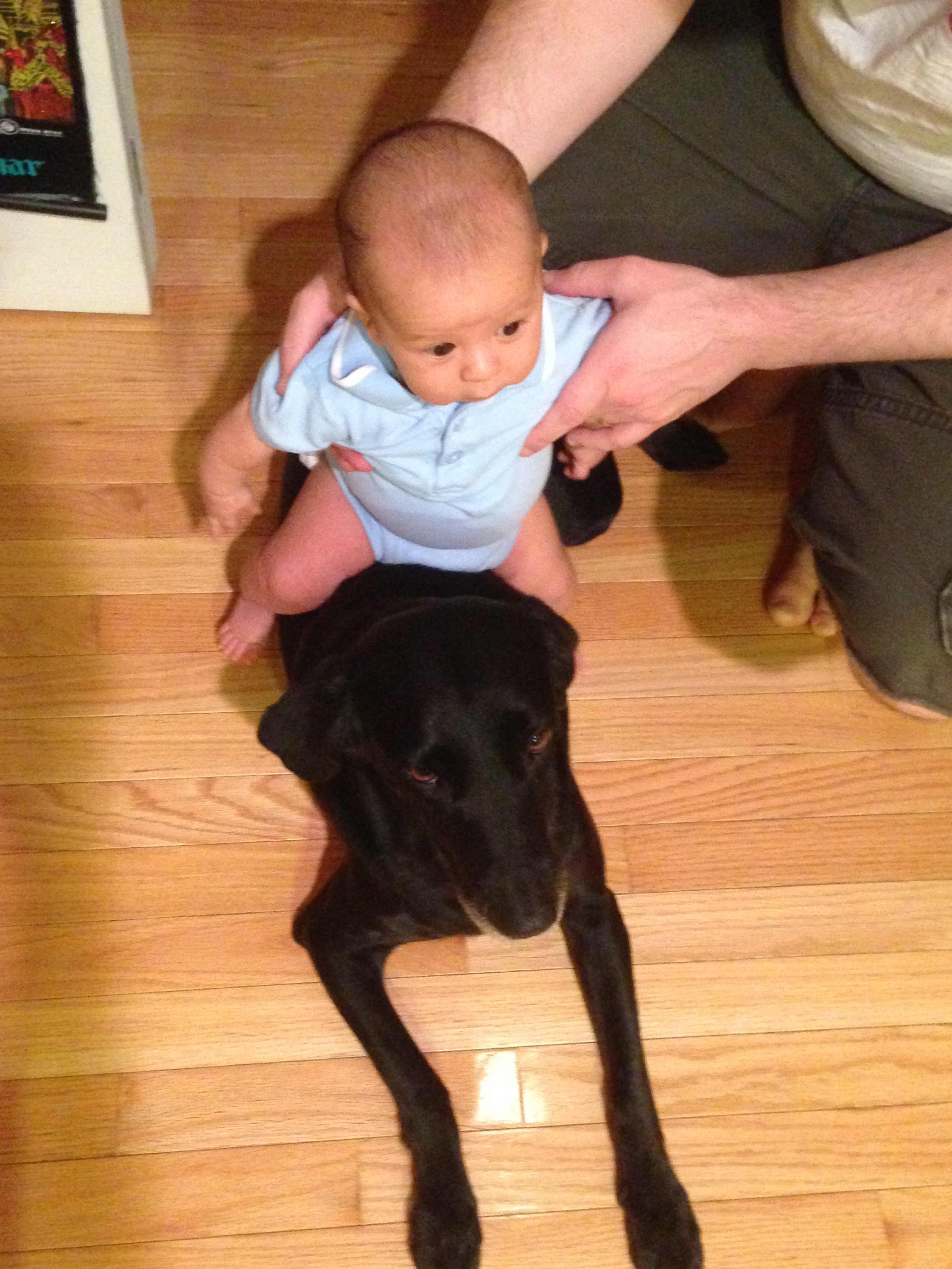 8 weeks 1 day – Riley is a super chill dog. Hopefully, the start of a beautiful friendship!