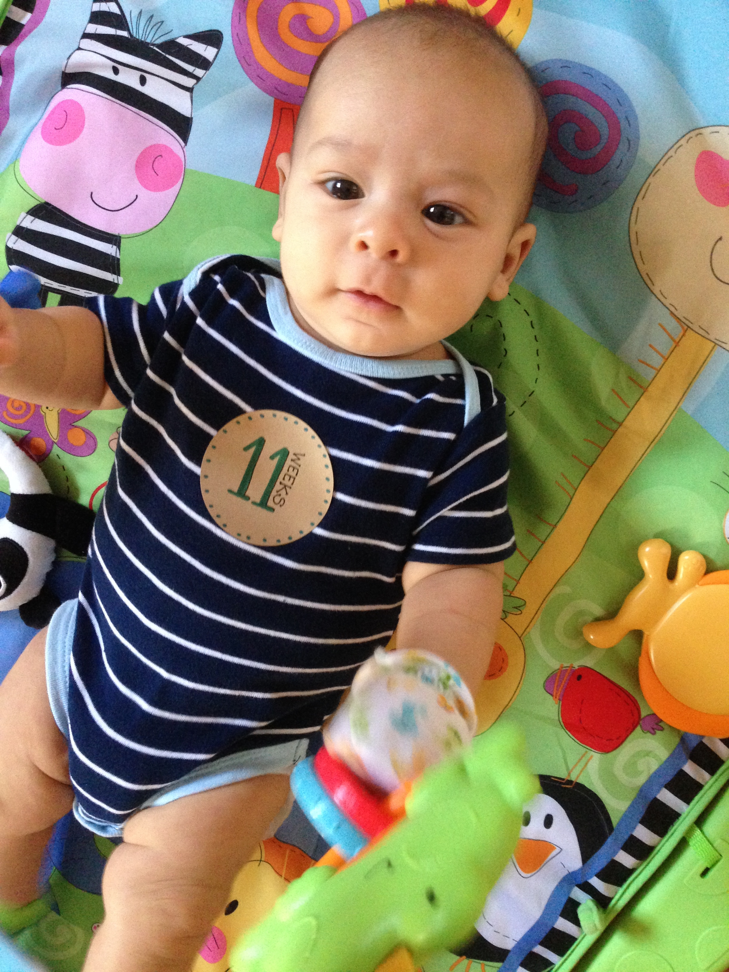 Sep 4 (11 wks) – He still loves his kick and play gym …