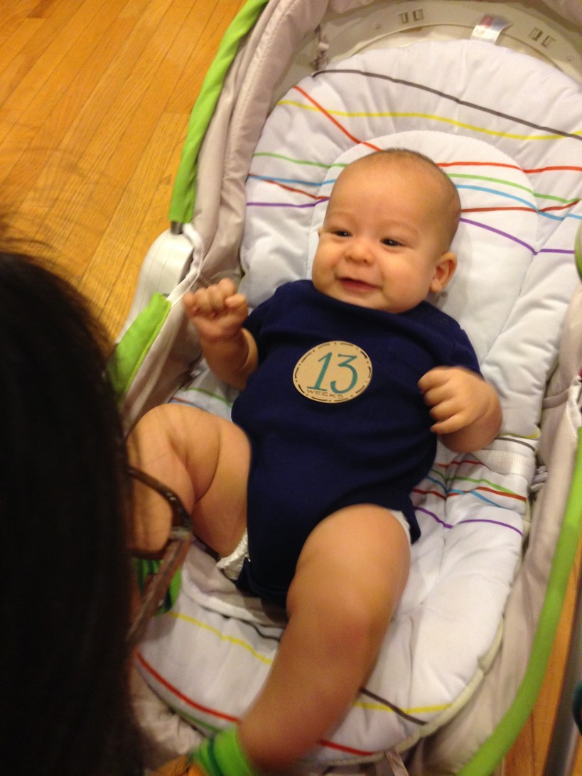 Sept 18 (13 wks) – Still kicking away with Grandma!