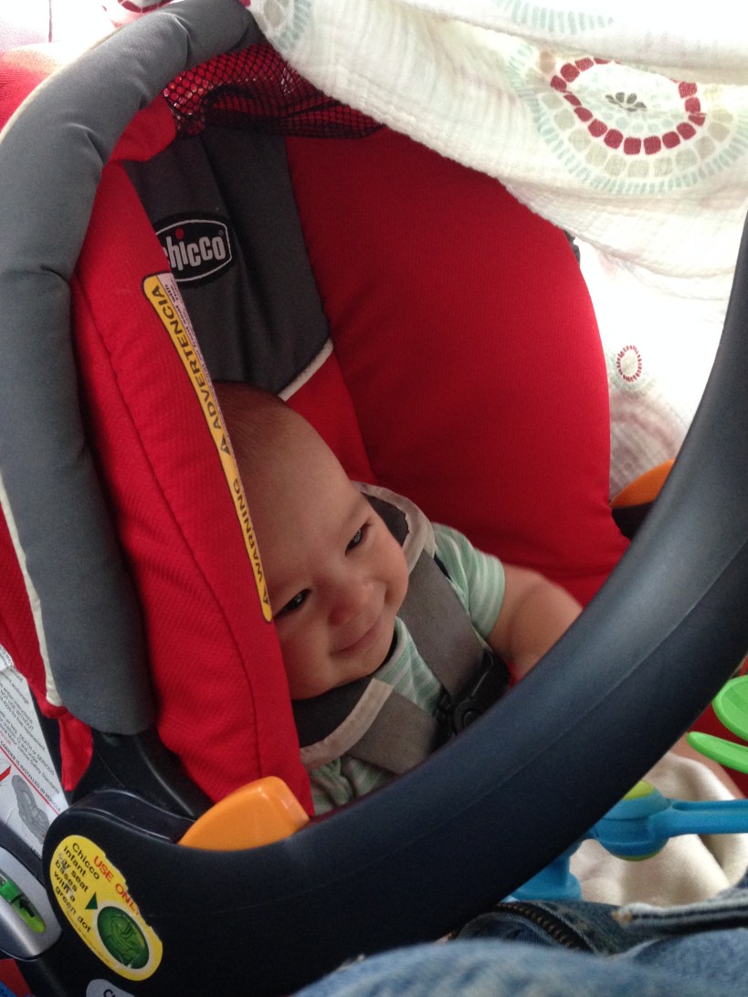 Sept 20 (3 m 1 d) – Grandma and Grandpa are leaving. 😦 Eli gets up early to see them off at the airport and makes sure to squeeze in all the smiles he can before they leave. (He even cried on the way back from the airport. And then slept from noon to 4 pm!)