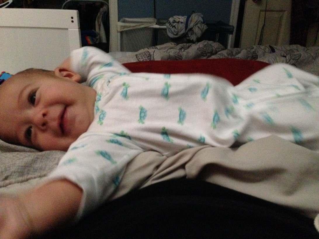 Sept 26 (14 w 1 d) – This is Eli’s “Draw me like one of your French girls” pose.
