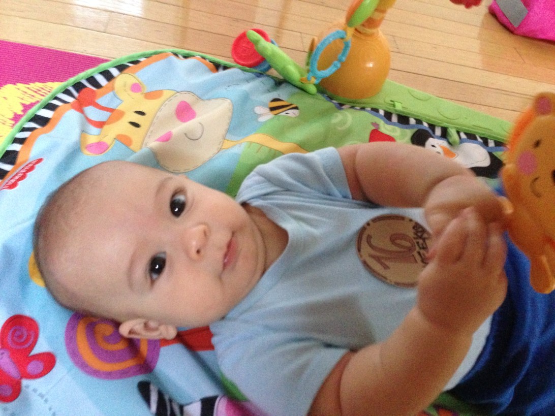 Oct 9 (16 wks) – Eli seems to be trying to roll over, but he hasn’t done it yet!