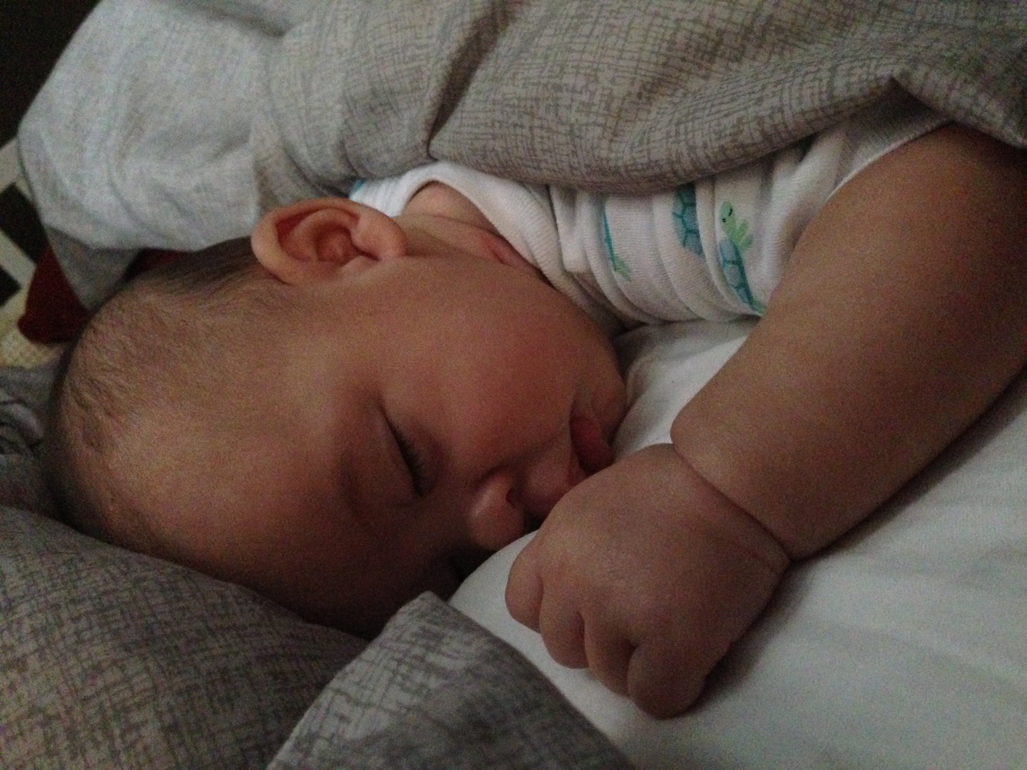 Oct 29 (4m10d) – Yes, Eli, you sleep on your tummy even though the doctor says not to. After two months of no sleep on your back, this was what worked for you, you little rebel!