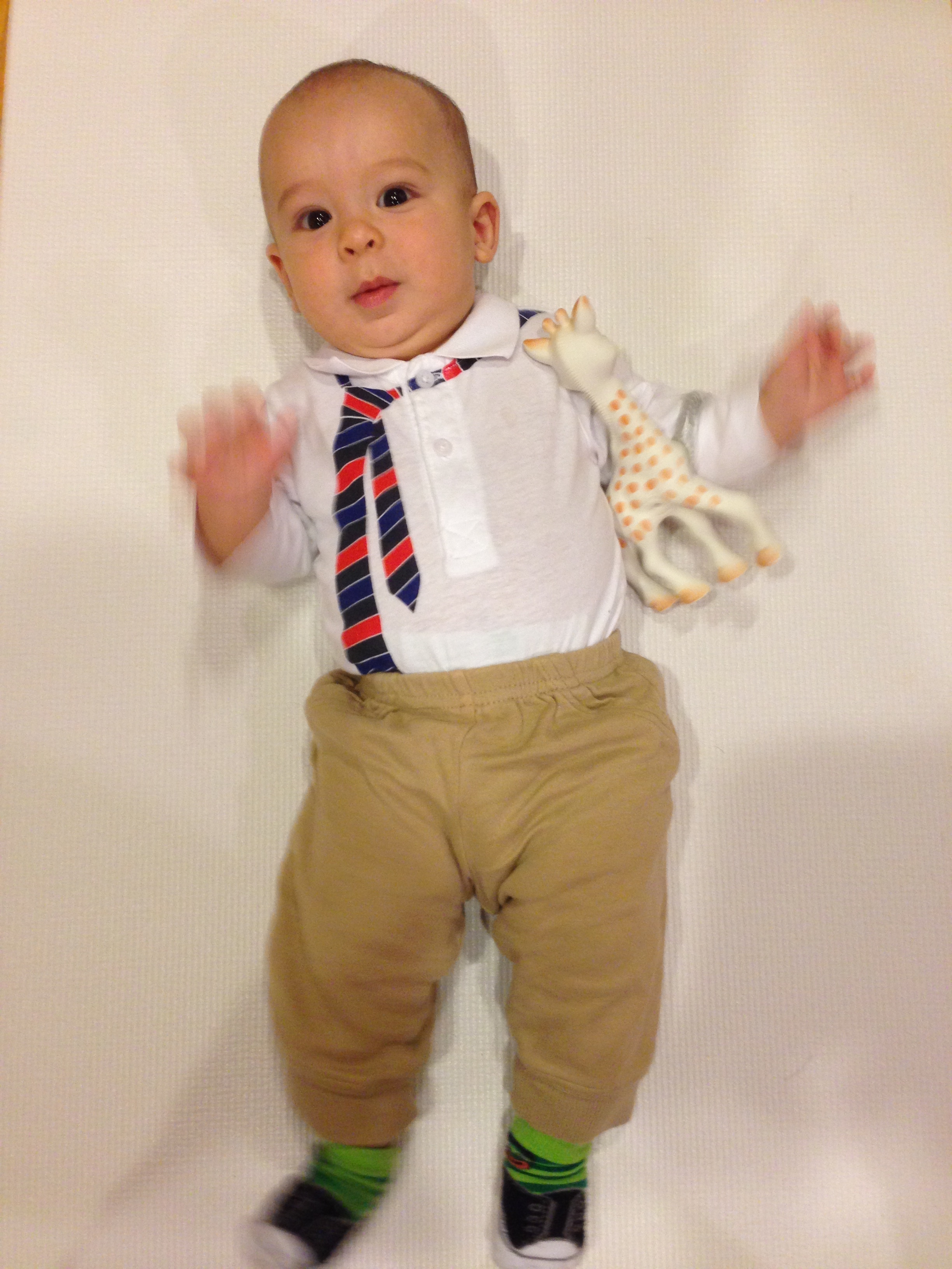 Nov 3 (4m15d) – All dressed up with no where to go. Just kidding! Of course we went running! 🙂
