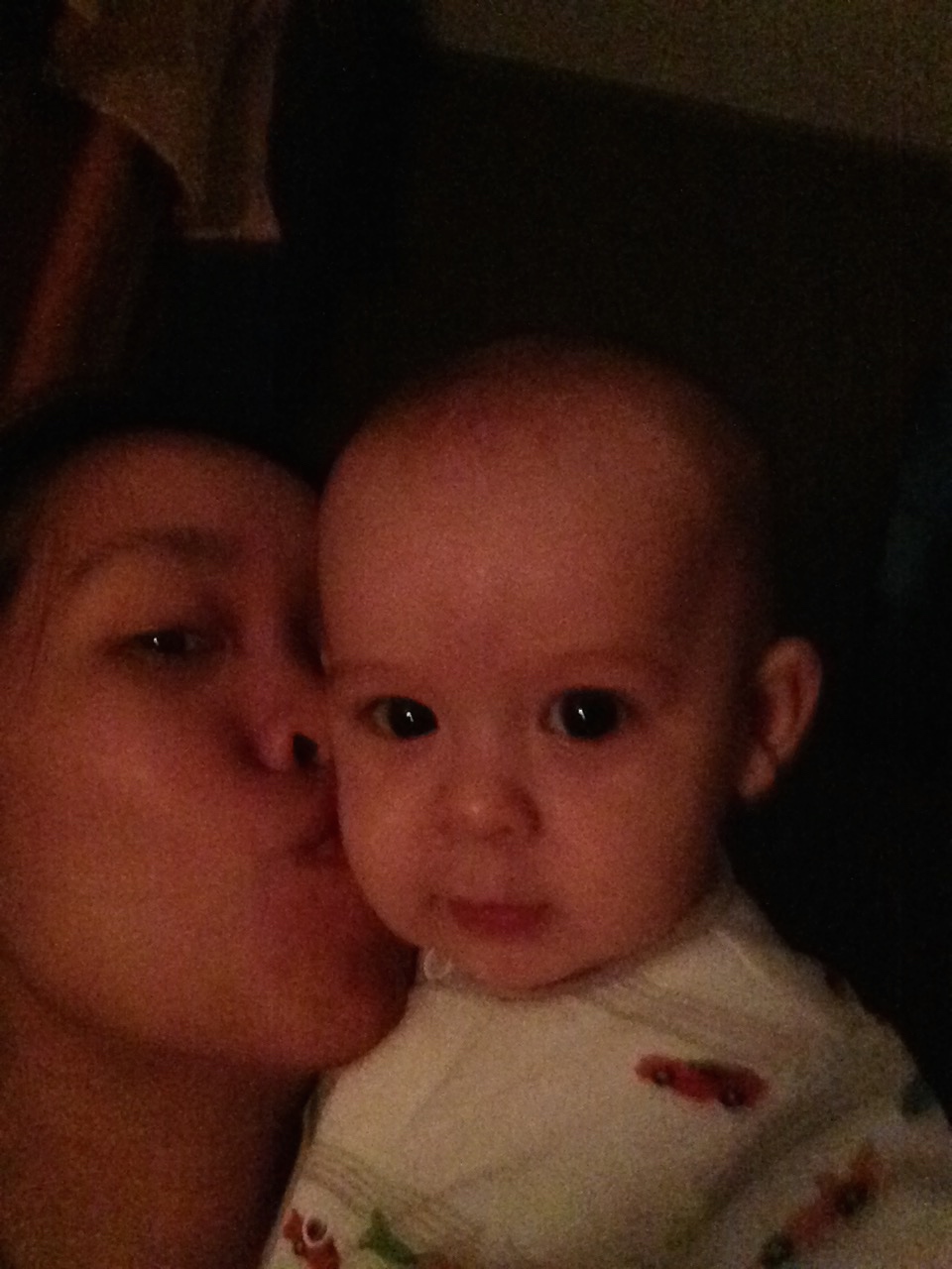 Nov 6 (4m18d) – Since your 4-month appointment on Oct. 20, you are no longer rocked to sleep. Thanks to Dad, we did the cry-it-out method, which was tough the first three days. Your longest crying spell was around 40 minutes. Then, on this night, Dad was away in Boston. I think I may have put you down to bed a little too early (around 8 pm) because you cried for a full 45 minutes. I finally broke and picked you up. This is the face of a baby who has his mom wrapped around his little finger. (But it’s been smooth sailing since. No more picking up … for now at least.)