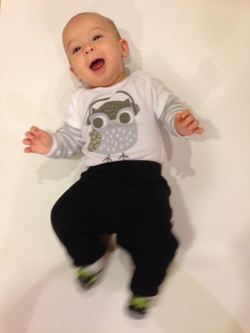 Nov 8 (4m20d) – Christmas is Mom’s favorite occasion (much to Dad’s chagrin), and judging from your expression, you are really enjoying the Christmas music! Yes, I know it’s too early, but Dad was away in Boston, so I’m getting all my Christmas music in!