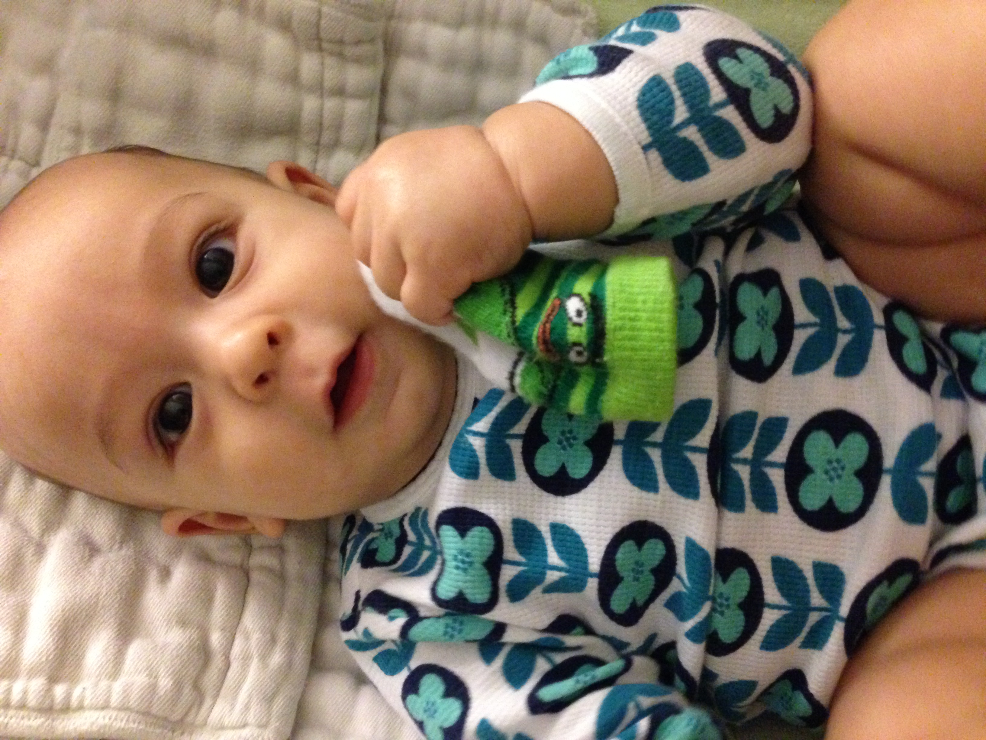 Nov 26 (5m1w) – But instead you pull off your sock! You don’t seem to mind, though, as you happily chomp away!