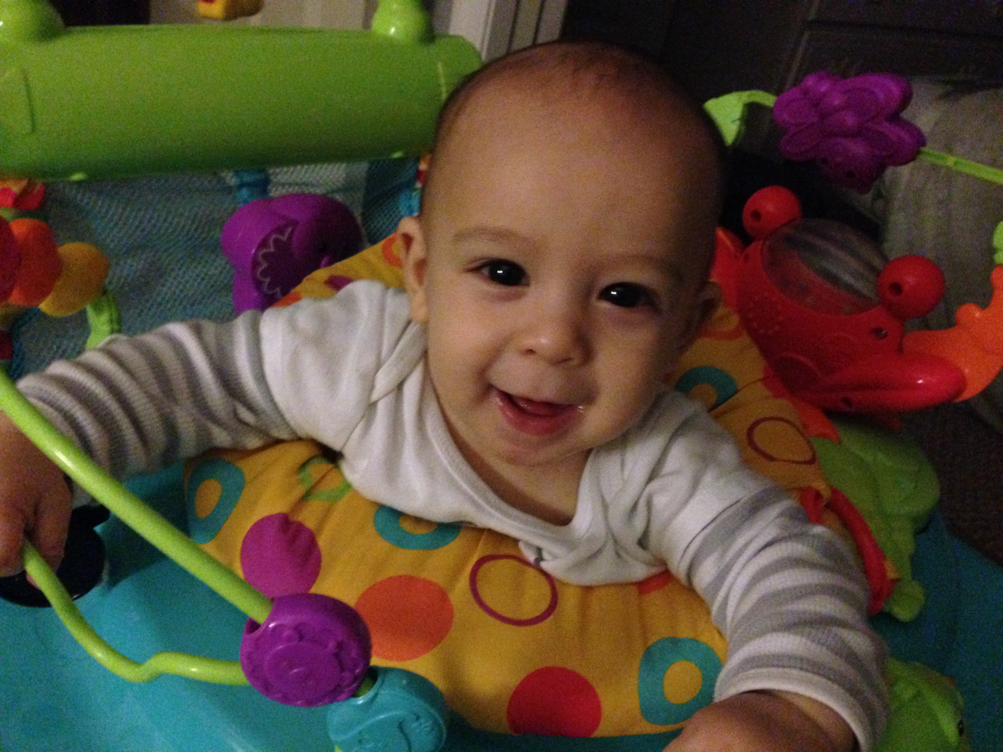 Dec 11 (25 wks) – You LOVE the bouncer (especially now that I’ve put in batteries)! You’ve grown so much that your feet are almost completely firmly on the ground. I may have to raise the bouncer pretty soon!