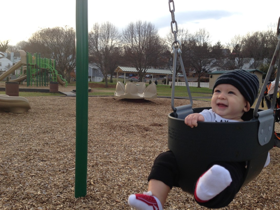 Dec 13 (5m24d) – Best day ever! Your first time in the swing! You were unsure at first, you bit down on the swing and looked inside the bucket (there’s a video!), but you eventually warmed up to it!