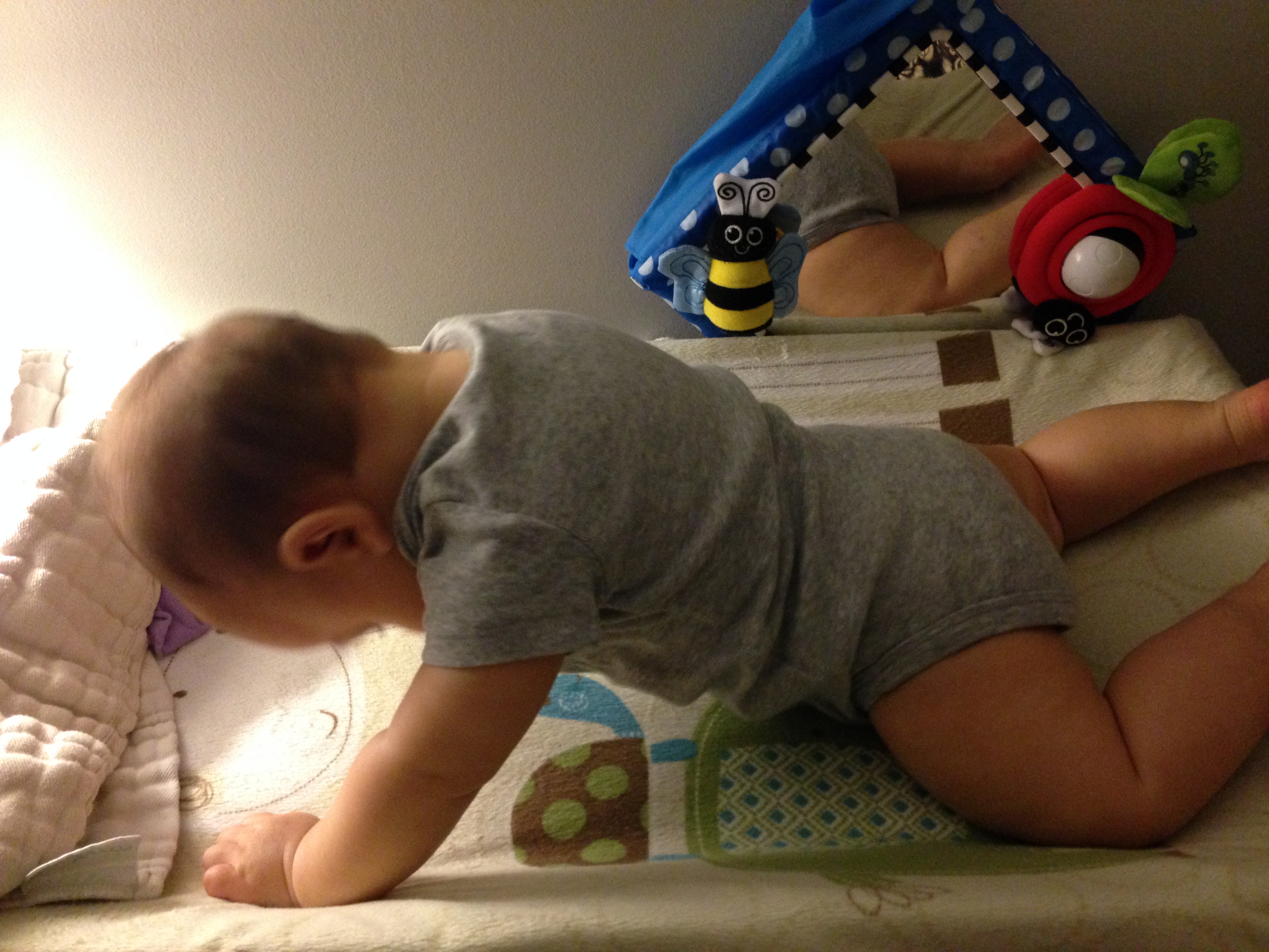 Dec 19 (6m) – You had just eaten your first solid meal hours earlier, and now look, you’re already swaying back and forth on your knees (for the first time)!
