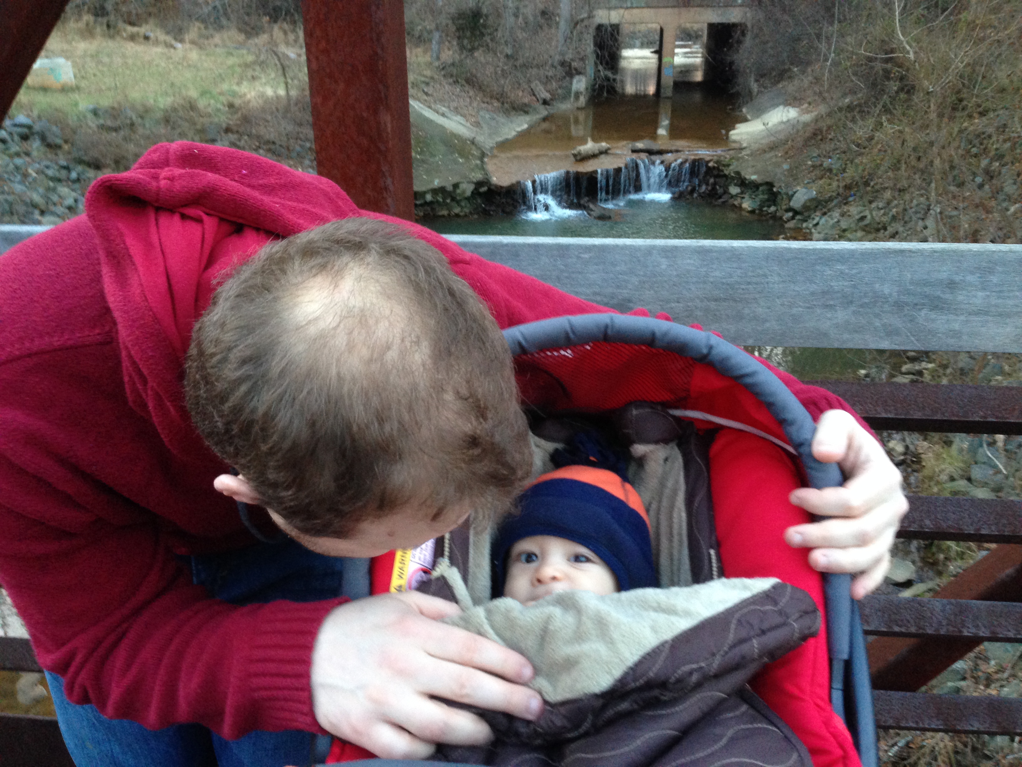 Dec 21 (6m2d) – Daddy was trying to get a smile out of you. Either that, or perhaps he wanted to catch a reflection of me (the photographer)! 😀