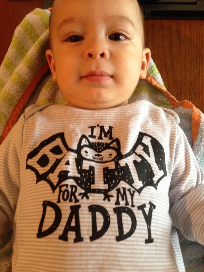 Dec 31 (6m12d) – Lying down after your bath contemplating the profundity of the message on your outfit, perhaps?
