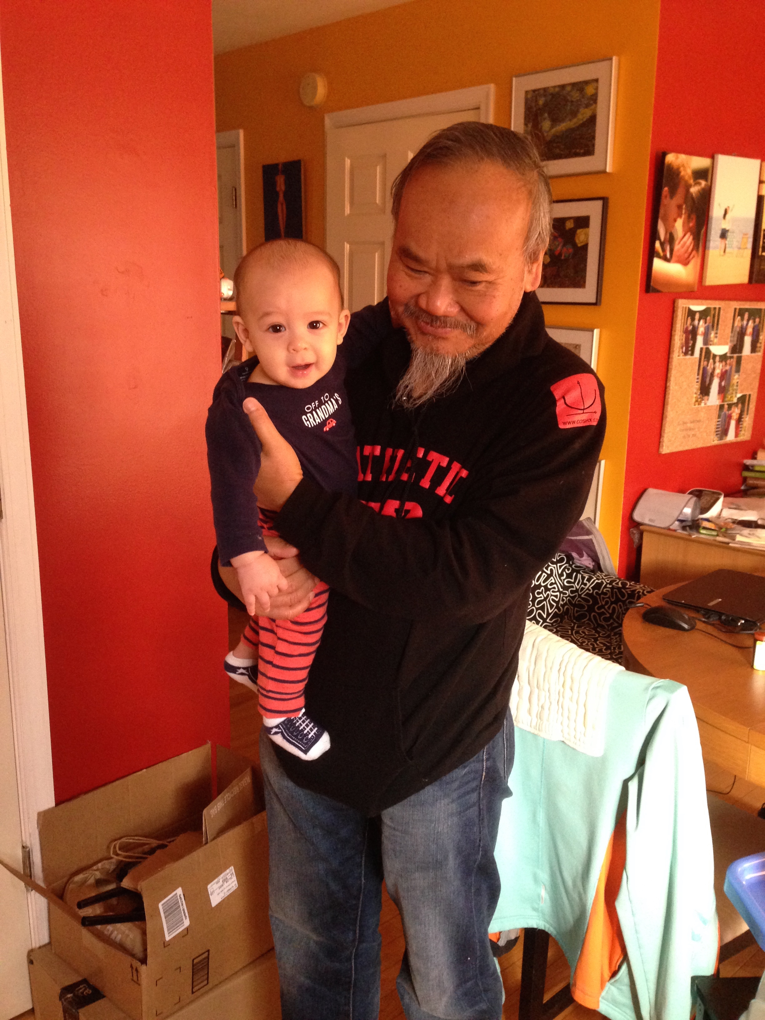 Jan 7 (6m19d) – Ông keeps clapping his hands to see if you will show any interest in being carried by a certain person (i.e. leaning towards the person you want to go to). Today (Jan 22), you definitely leaned towards him! 😀