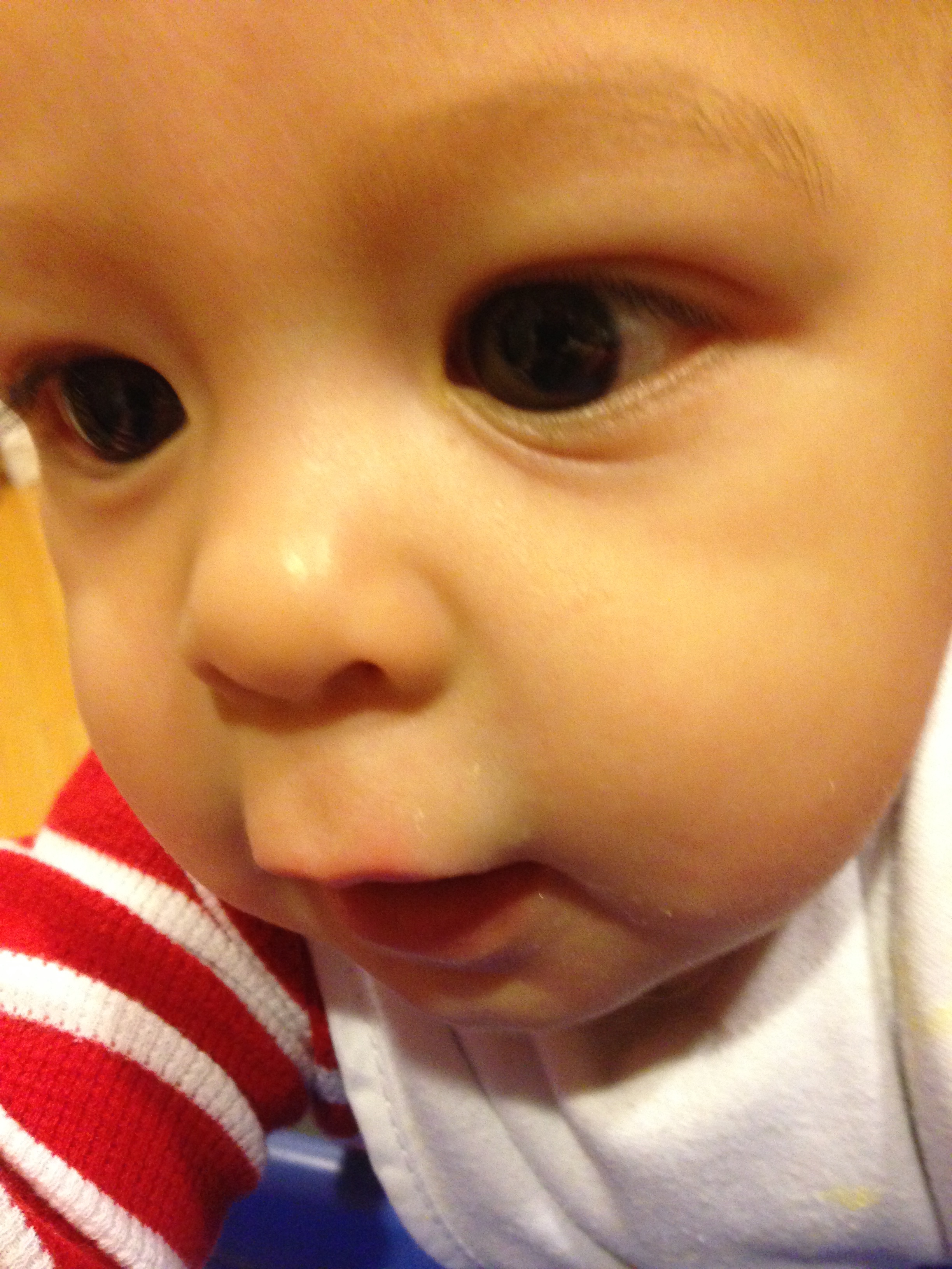Jan 7 (6m19d) – Doesn’t this look like another selfie? (It remains to be seen whether the word “selfie” will still exist by the time you are old enough to read it. Just in case, a “selfie” is a picture you take of yourself, usually (but not necessarily) with a phone. Hopefully, I won’t have to explain what a phone is …)