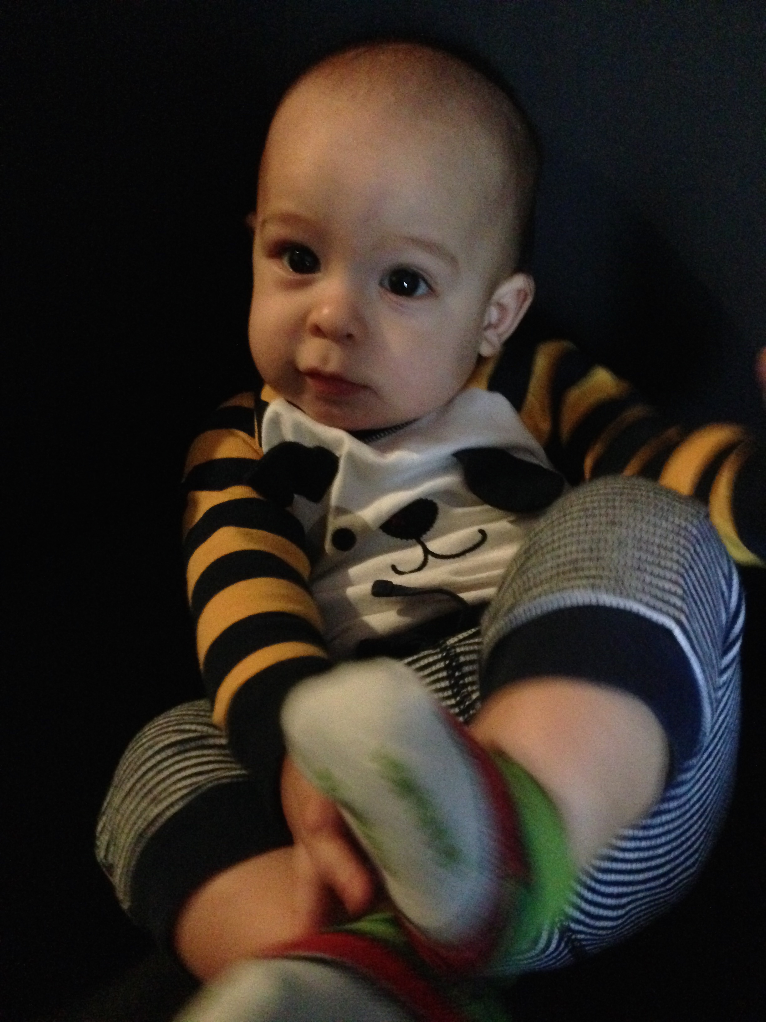Jan 12 (6m24d) – Here you are modeling this cute shirt your Bubbe and Zayde picked out for you!