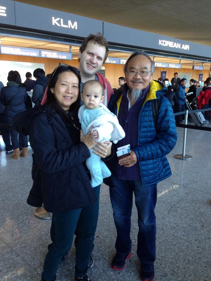 Jan 31 (7m12d) – At Dulles Airport after Ông and Bà checked into their flight. Not smiling because you’re sad or because you’re sleepy? I’m going with sleepy because you fell asleep on the car ride back to the hotel!