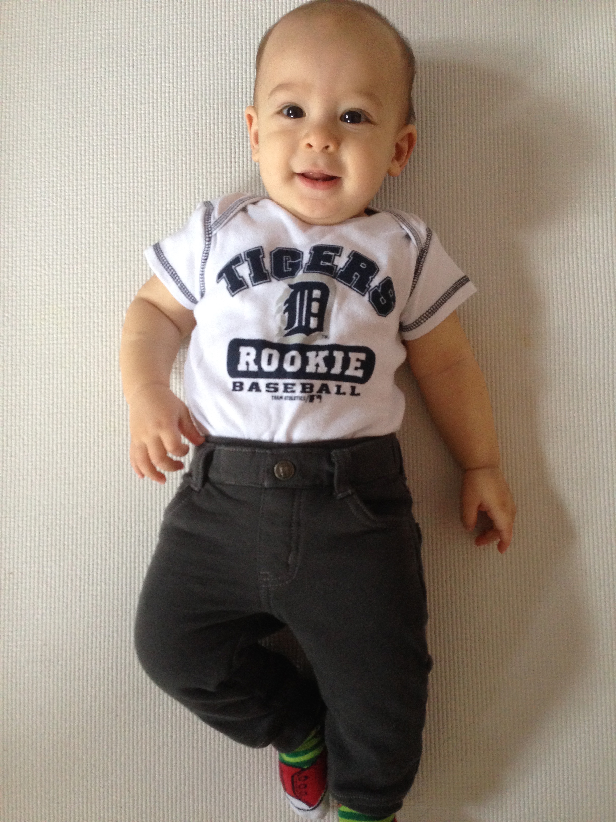 Jan 22 (33wks) – Looks like you don’t mind baseball! 😀 Thanks to Aunt Merryl and Uncle Mark for the cute shirt; Uncle Quang and Aunt Ginnie for the super hip pants! 😀