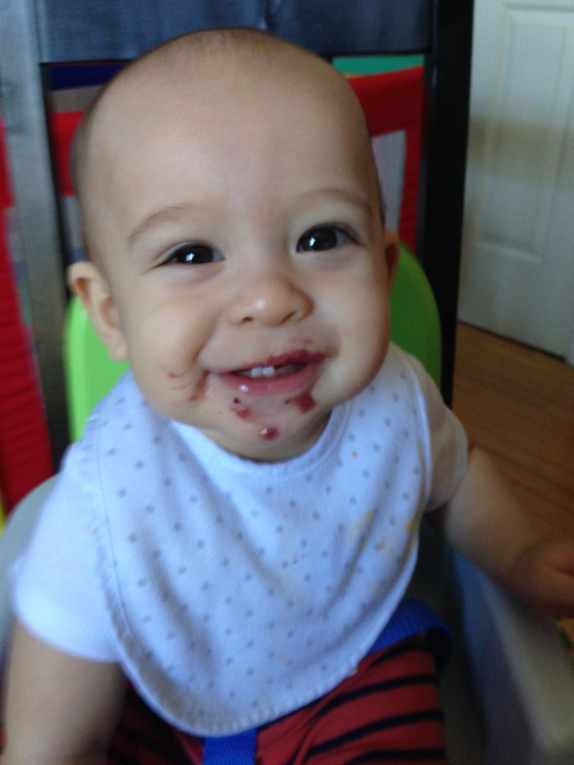 Feb 3 (7m15d) – Do you see your two bottom teeth? Awww!