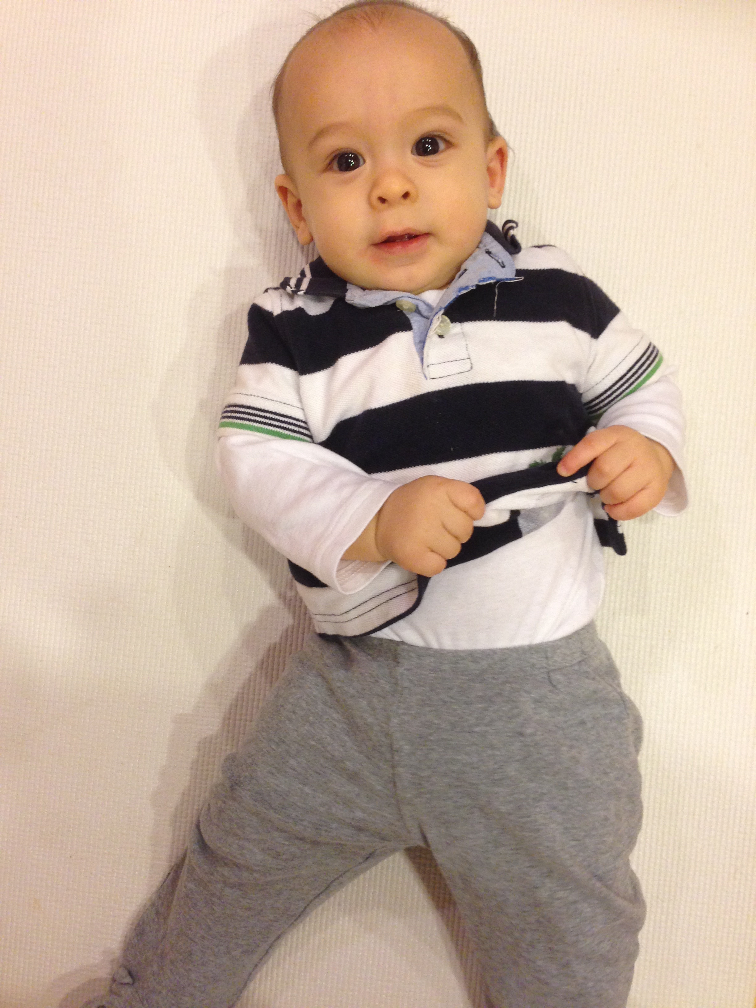 Feb 13 (7m25d) – You started out by pulling off your socks. Nowadays, you’re pulling off your bibs during mealtime. Could this be the beginning of pulling off your shirts?! (Edit: It’s Feb 27th. You tried to pull off your left sleeve today during mealtime. And that’s after you pulled off your bib! :D)