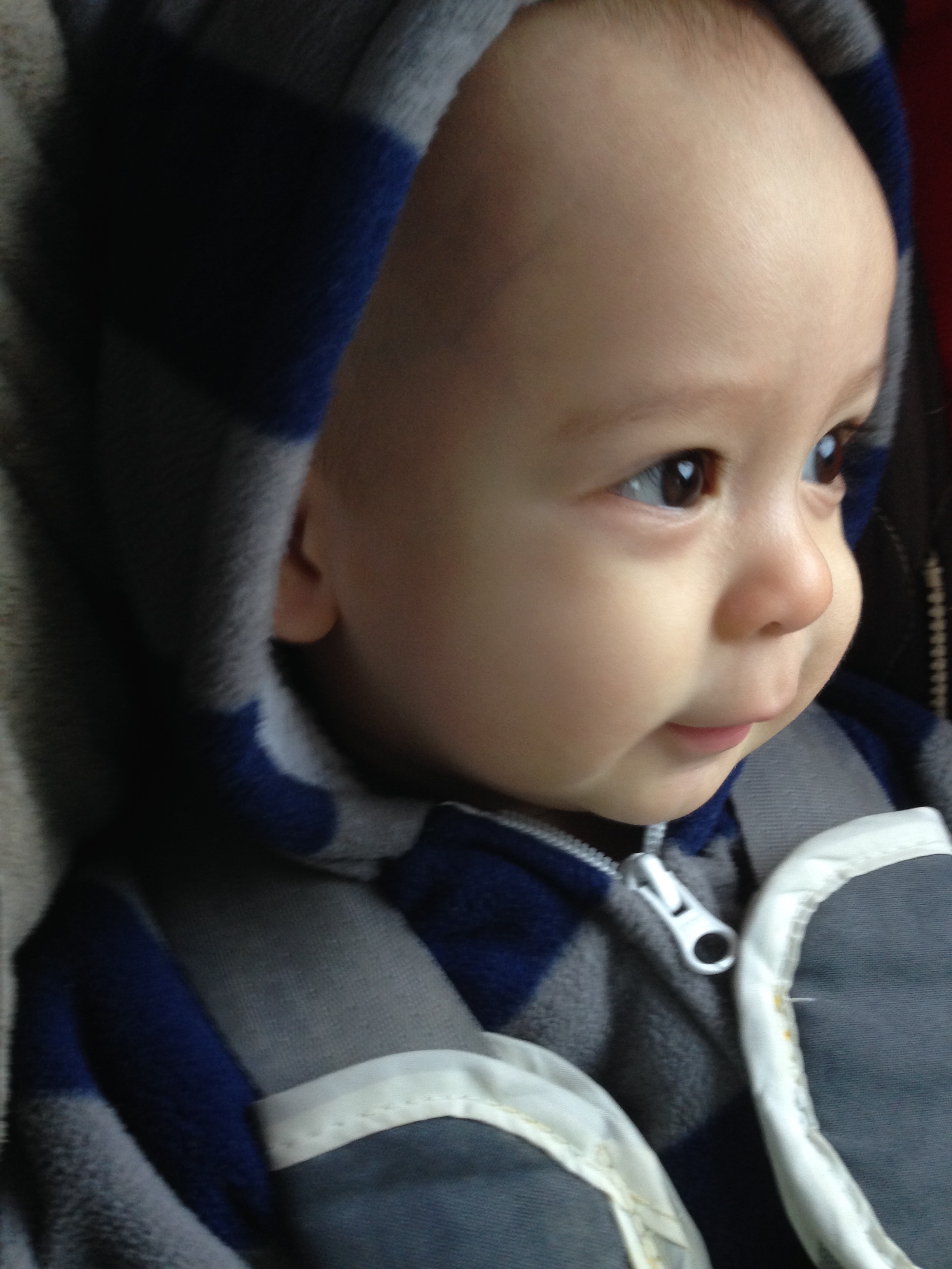 Feb 16 (7m28d) – All happy from our snowy walk, on the way back home!