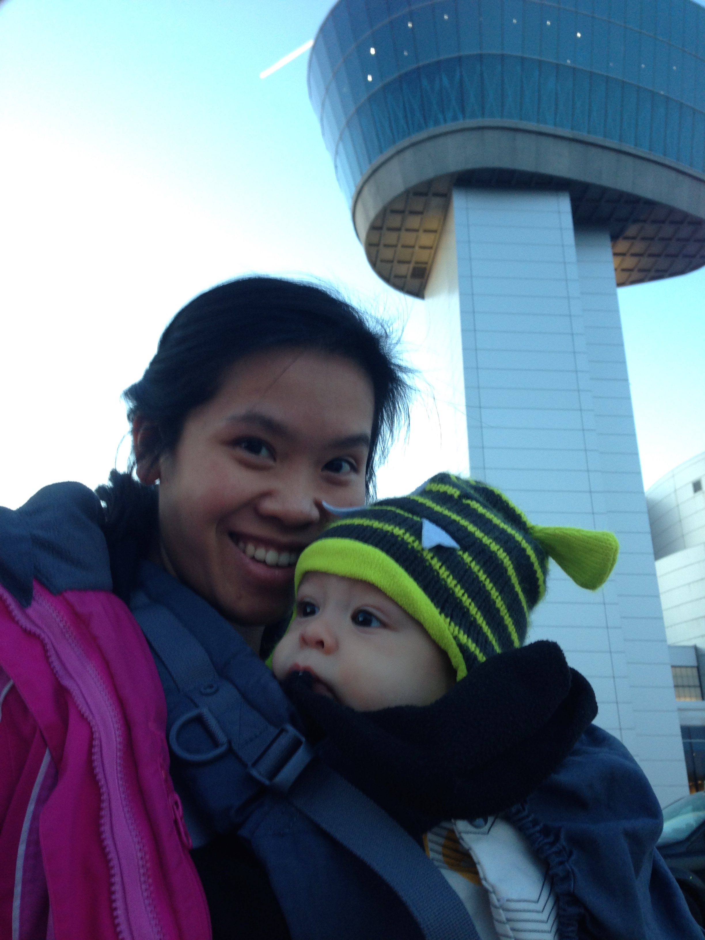 Feb 1 (7m13d) – In front of the tower at Udvar-Hazy Center. It was COOOOLD up in Northern Virginia, and we got to the museum with about 30 minutes before closing. Good thing, because the museum wasn’t too crowded, and parking was FREE!