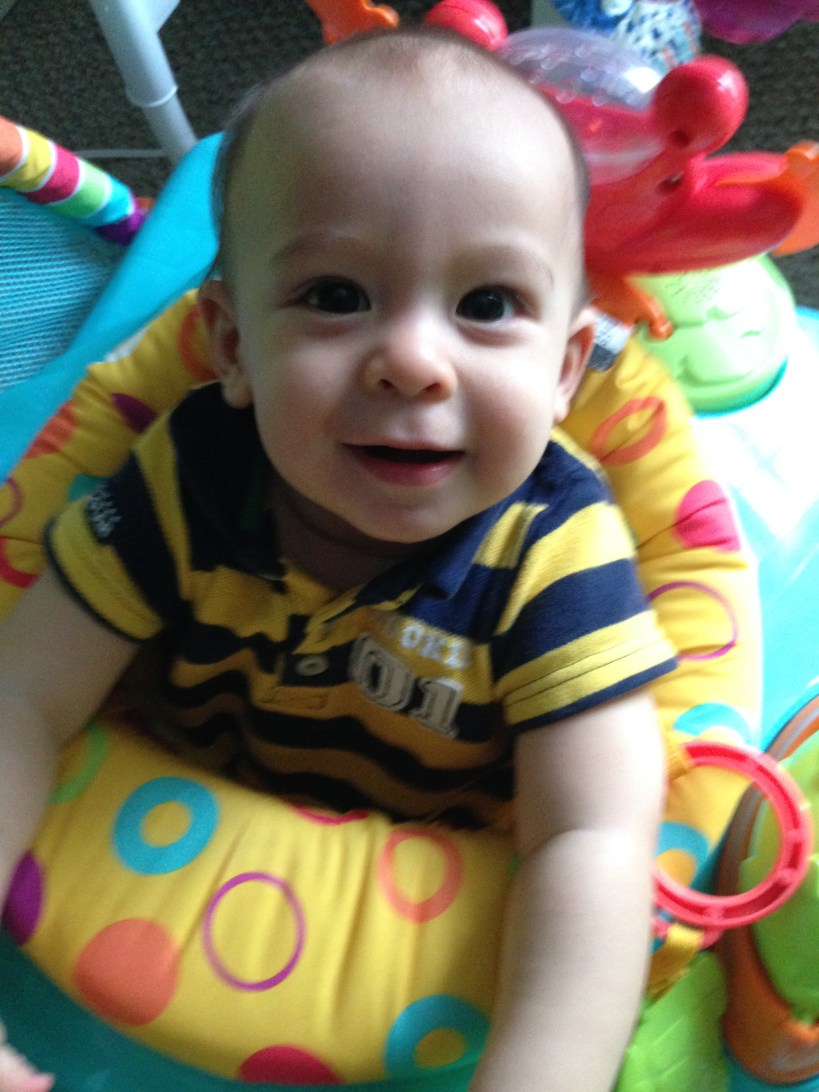 Mar 9 (8m18d) – You still love your bouncer! You’re spinning all the toys around you at this point.