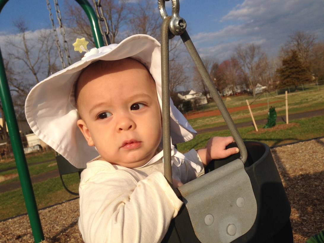 Mar 24 (9m5d) – Most of your pictures these days are in the swing — partly because you enjoy it so much that you’re usually smiling, and partly because you can’t move too much. :p