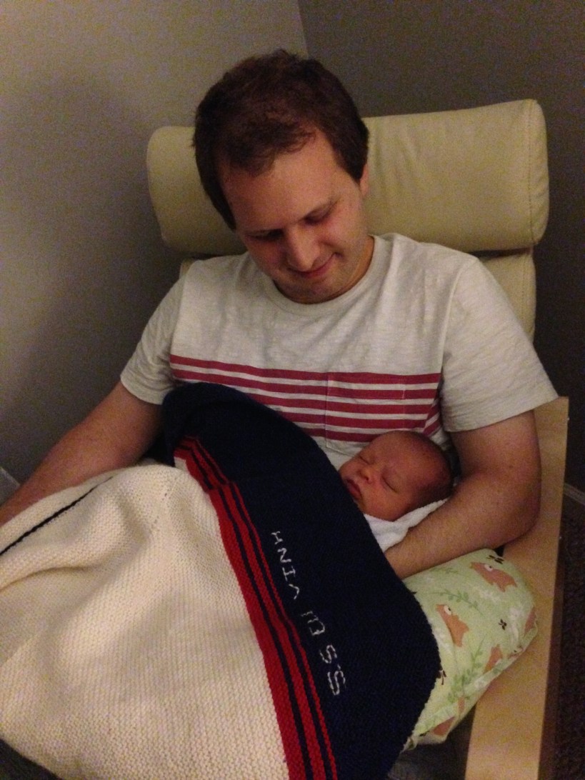 15 days old — Ben’s aunt gifted Eli with this beautiful hand-crocheted ship with “S.S. Eli Vinh” as its name. I love it! We got two more beautiful handmade quilts that I’ve been using for his night massages. I’ll put up a picture soon! 🙂