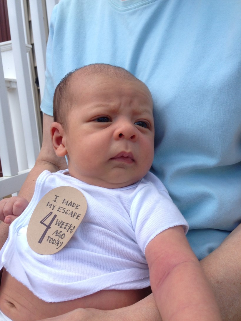 Ready for his 4-week glamour shot, staring off broodingly into the distance!