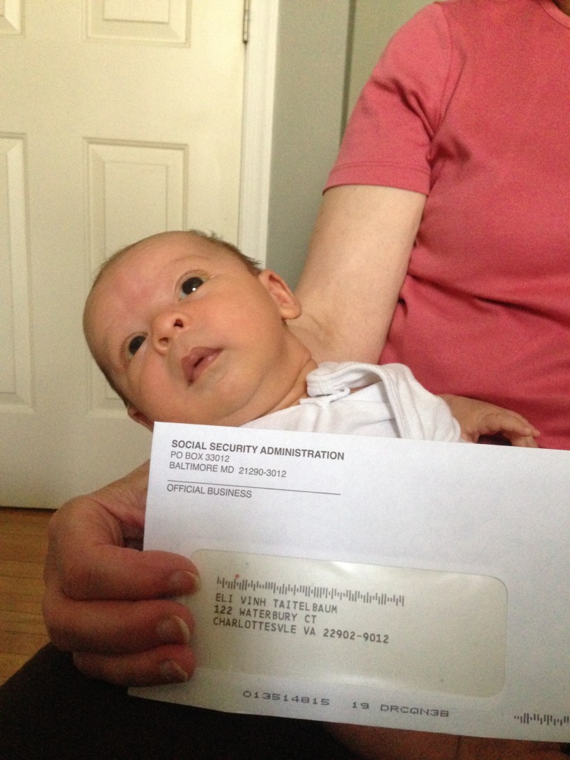 Eli’s existence is official! His social security card arrived for his one-month birthday!
